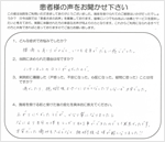 腰痛と肩こりがひどくいつも全身がだるい感じでした。インターネットの口コミがよかったのでこちらに伺いしました。痛かったり施術後よけいにひどくなったりしないか不安でしたが、上がりにくかったうでがかなり楽になりましたし、なにより自分の体をしっかり知ることができたのがとても良かったです。不安だった痛みもさほどでなく、施術後は体が軽くなりました!!